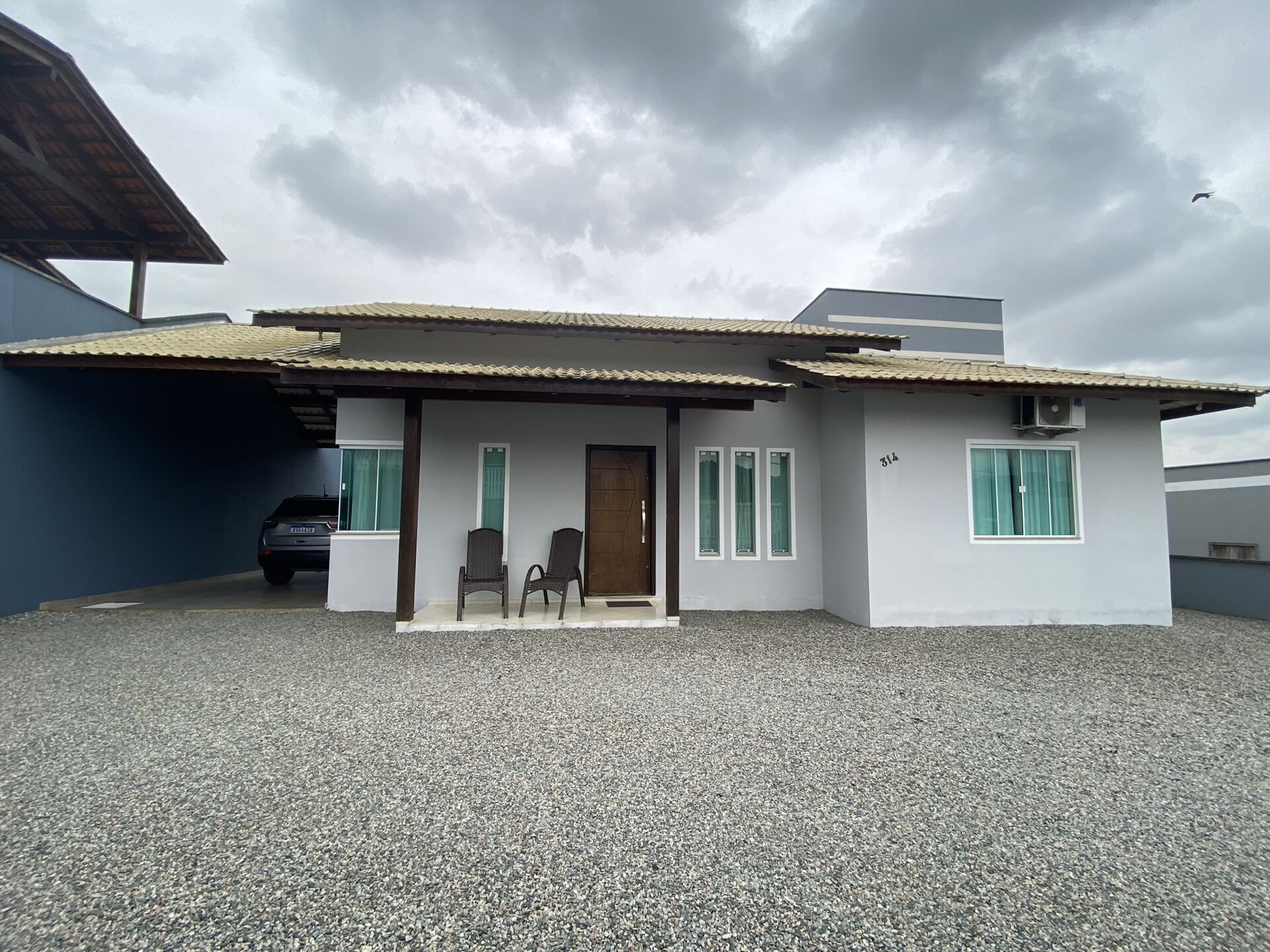 A casa conta com 3 dormitórios sendo uma suite, sala de estar, sala de jantar, cozinha, área de serviço e uma vaga de garagem.