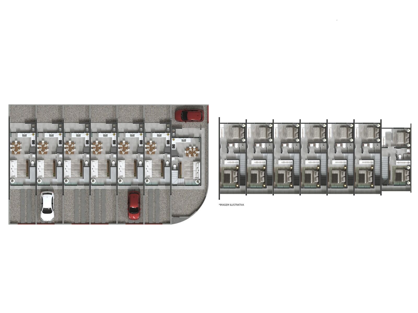 Térreo: Sala e cozinha conjugadas, lavabo e lavanderia.