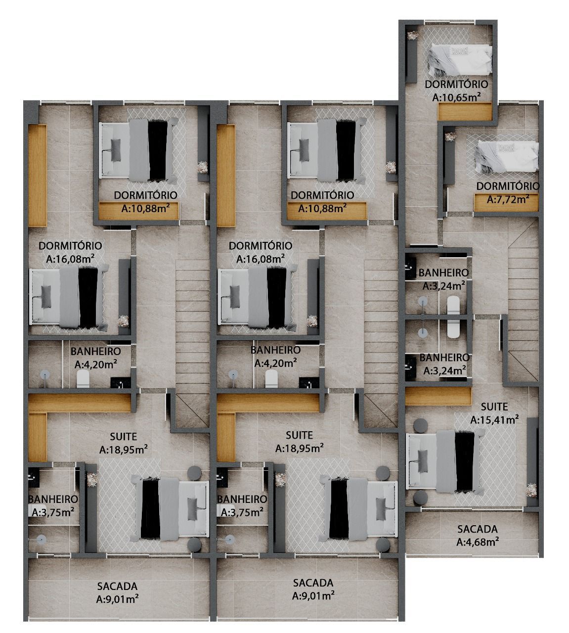 OBS: unidade 3 terá 1 vaga coberta e outra descoberta.