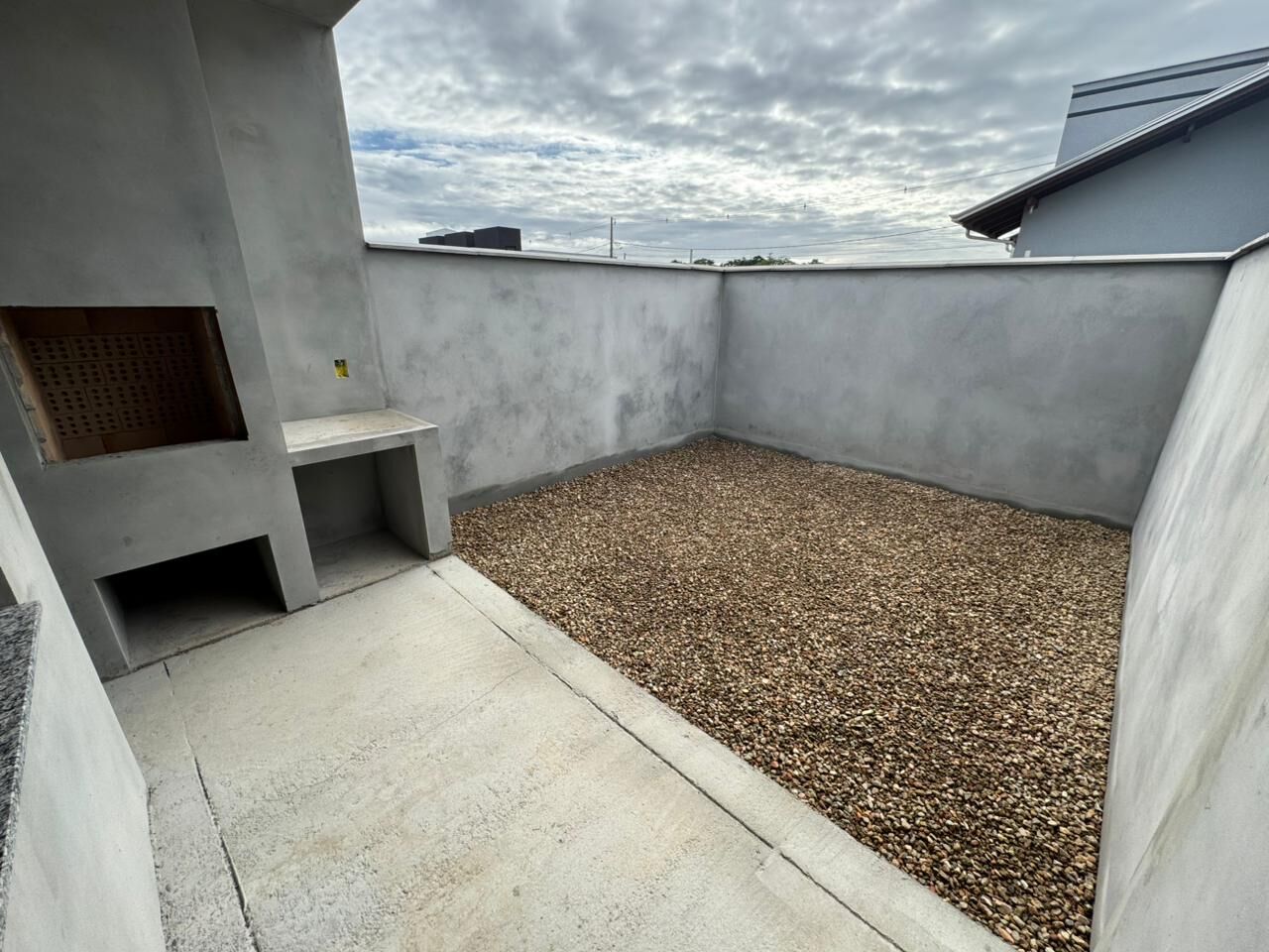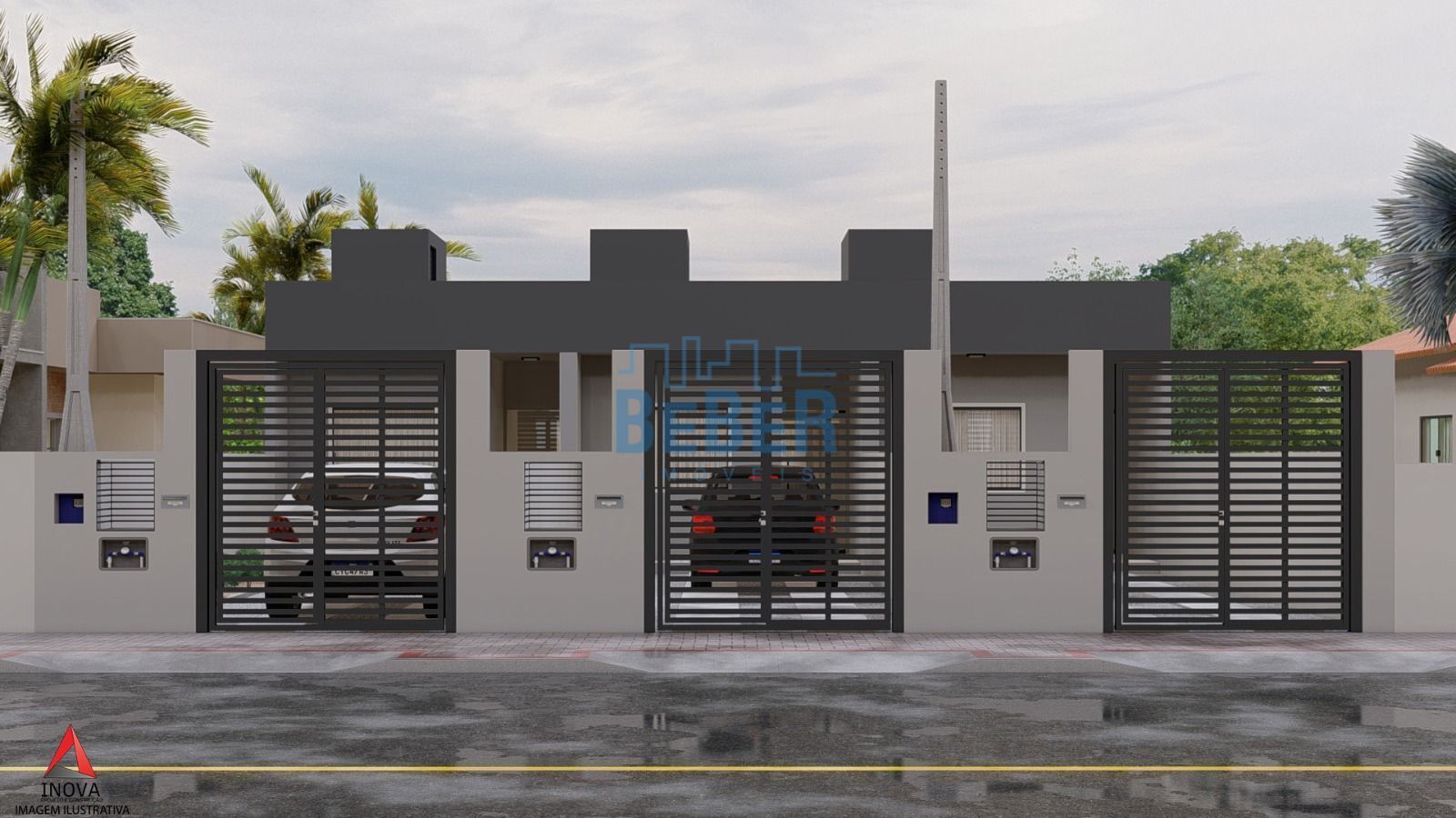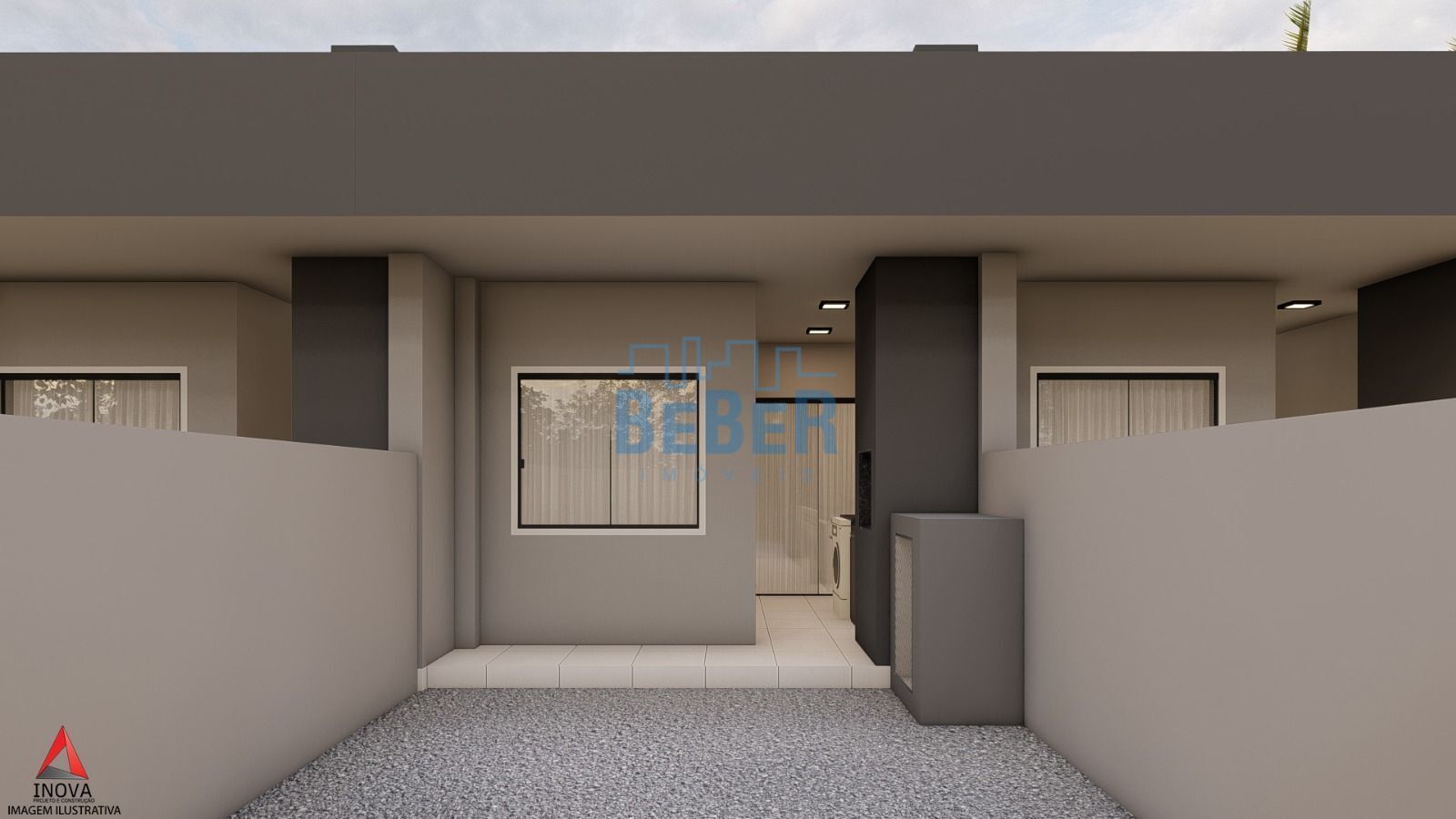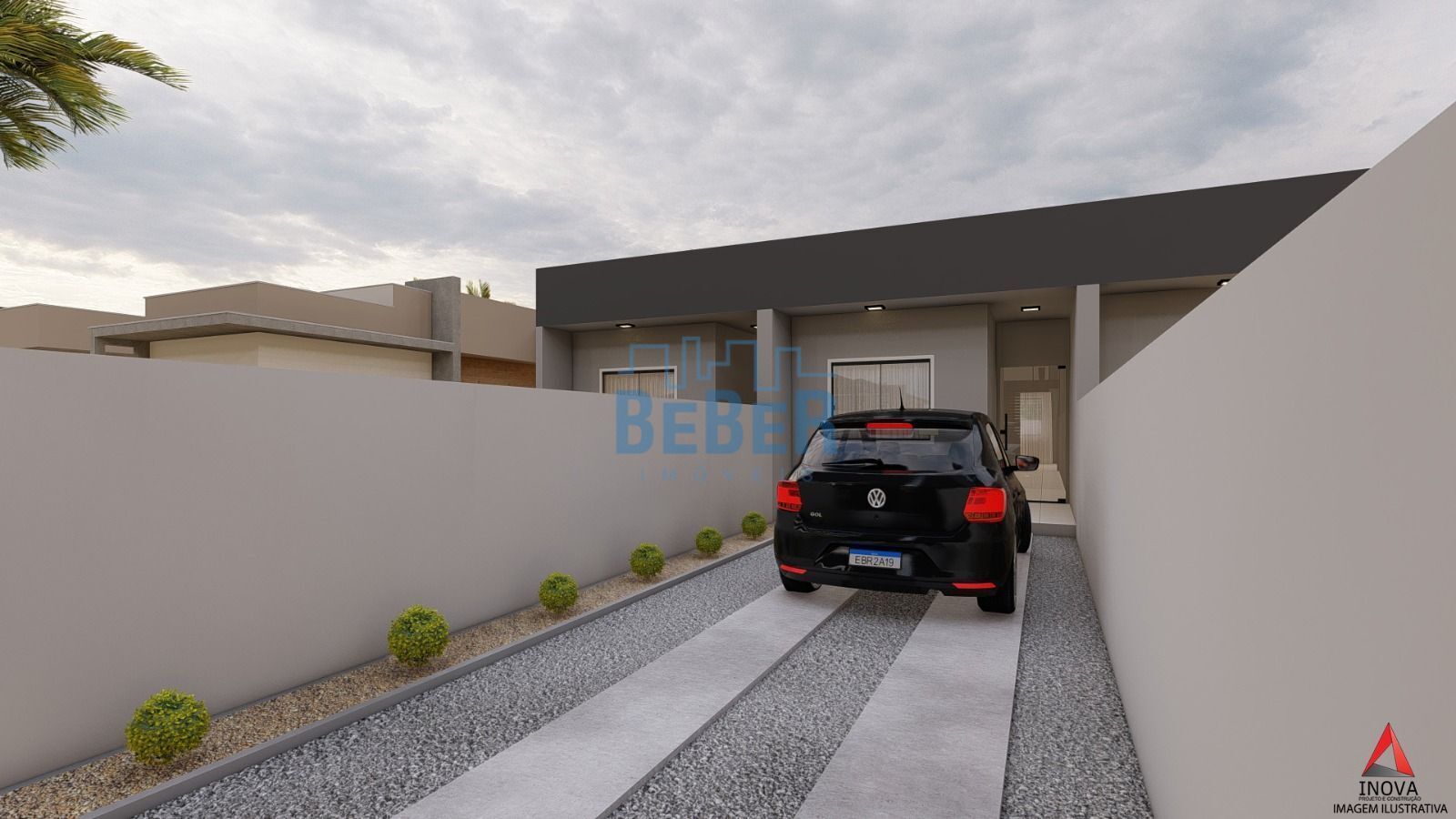 Contendo 02 quartos, 01 bwc, sala de estar/jantar, cozinha, área de serviço, 02 vagas de estacionamento e amplo espaço atrãs. Portão basculante de alumínio, roda teto gesso, portas brancas laqueadas, rebaixo em gesso em toda parte interna e massa corrida.
