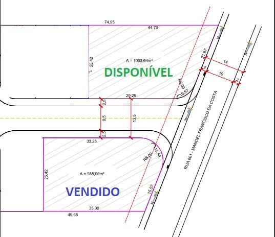 O terreno possui 1.003,64 área total, conta com uma frente de 21 metros para via principal.